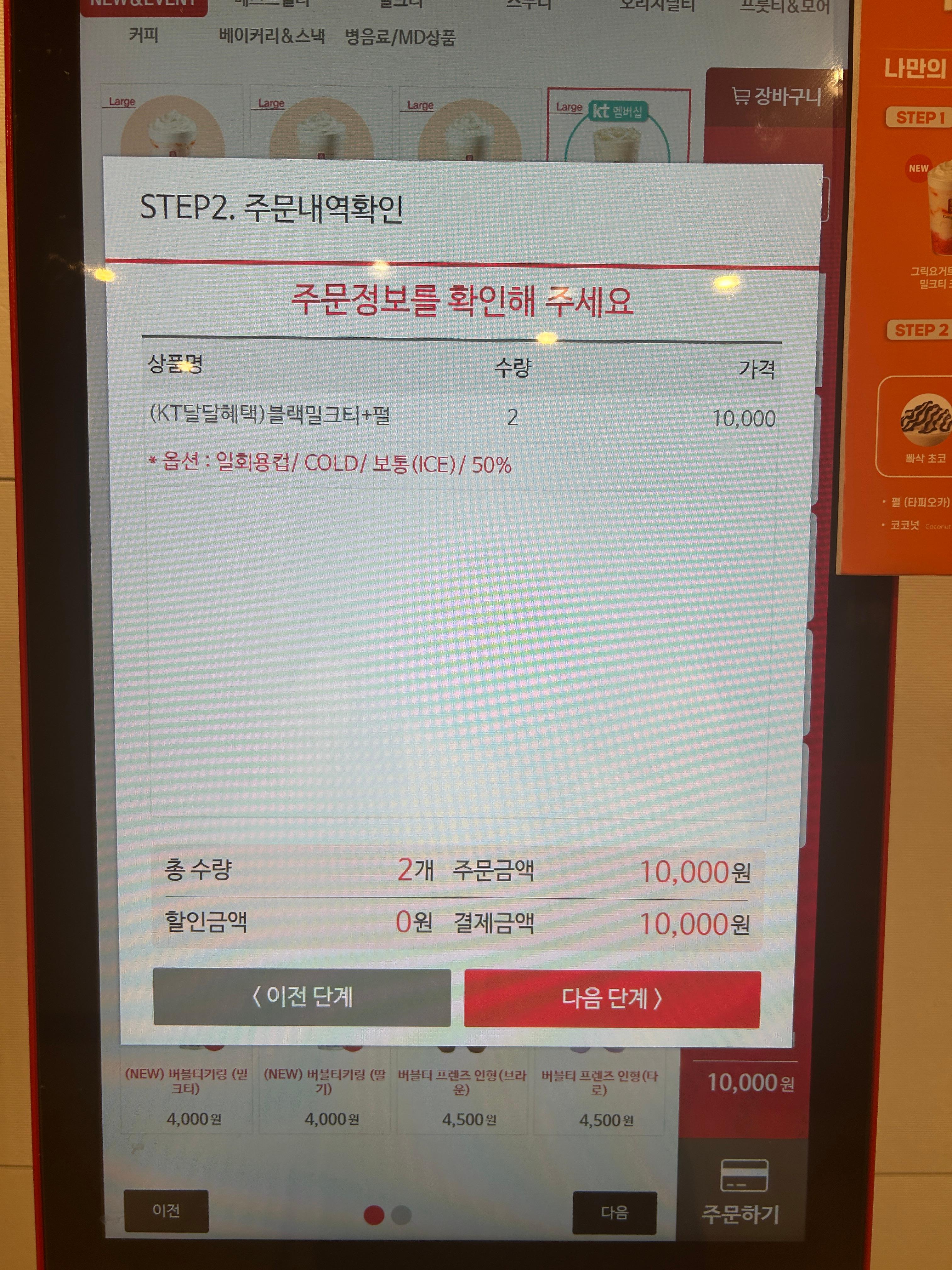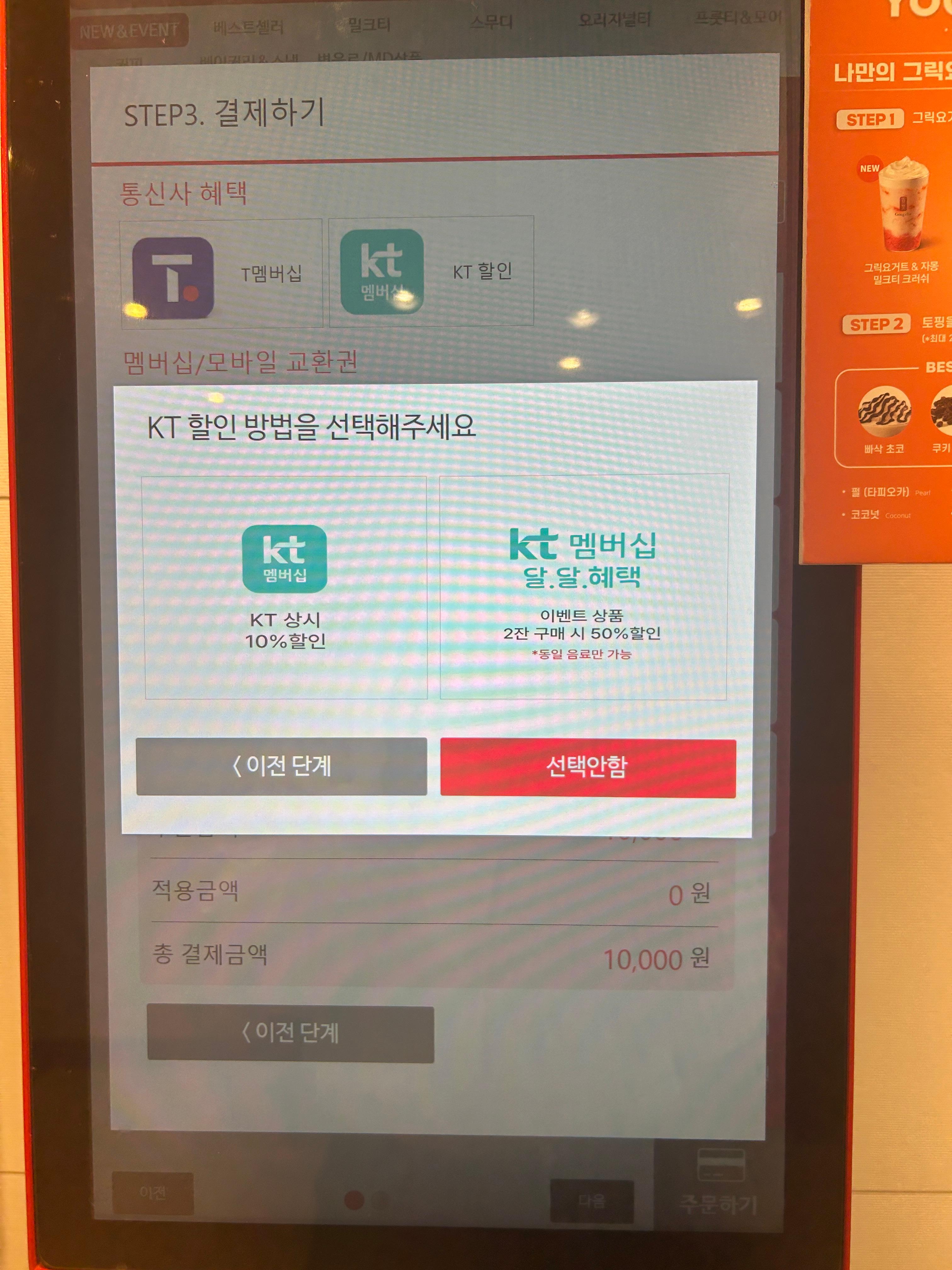 키오스크로 메뉴 주문 및 할인하는 방법을