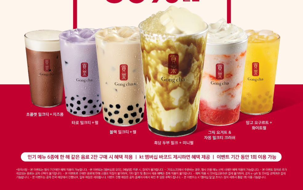 음료 6잔은 공차홈페이지에 자세히 소개되어 있습니다.